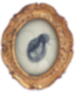 Reeves processes her personal grief and protects her familial memories through minute, delicate and laborious works reminiscent of Victorian mourning arts like hair work. The resulting works in her Family Preservation series (left), are intimate and invite close observation. Carefully presented and framed miniature chests are held onto tightly on the felt background, forming a wreath and weaving an elusive storyline of grief and death-anxiety. Chandeliers and antique dollhouse furniture wrapped obsessively and mounted on felt, evoke a sense of claustrophobia and curiosity. Reeves obscures each miniature piece in a web of hair-colored thread, alluding to a narrative of both protection and trauma.